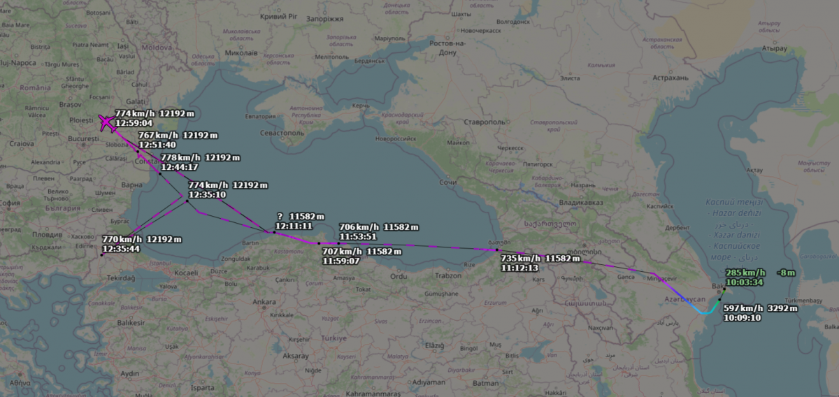 Pridedamoje nuotraukoje akivaizdžiai matomas lėktuvo skrydžio trajektorijos "šokis" (aplikacija ADS-B Exchange). Neįtikėtina. Tokias klaida galima pateisinti dviem priežastimis - Saulės aktyvumo įtaka GPS palydovams, arba karo veiksmų Ukrainoje pasekmė. Tiesa, FlightAware aplikacija rodo teisingą skrydžio trajektoriją.