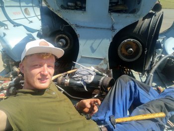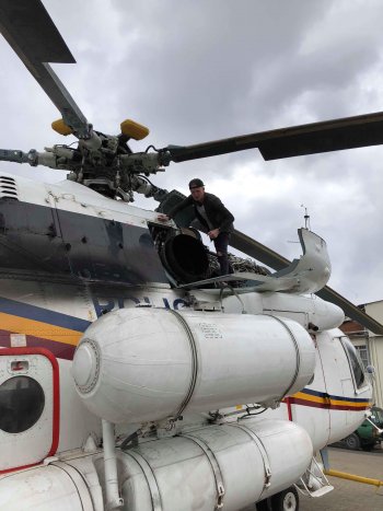 Marius Nagys, keliaujantis sraigtasparnių mechanikas.
