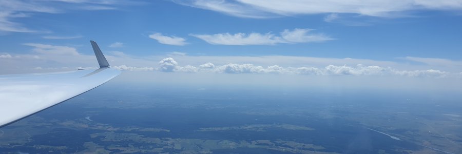 10-ta diena. Visur žadamos liūtys, audros, bet gavome skristi 2 valandų maršrutą su ~20-25 km atsižymėjimo zonomis pietinėje Lietuvos dalyje. Jau pakilus buvo aišku, kad visi padorūs keliai grįžimui bus uždaryti anksčiau nei po tų 2 valandų, o tolumoje virš Varėnos miškų jau regėjome augančius debesų bokštus. Taigi, visi dalyviai nelaukę startavome kartu. Gan greitai suskraidžiau iki paskutinio posūkio punkto, bet rezerve turėjau dar kažkur išnaudoti apie 30 minučių laiko, o skristi papildomo atstumo nėra kur, nes visur aplink audros. Pavojus, kad jos uždarys ir grįžimą į aerodromą, paskatino apsisukti ir baigti maršrutą anksčiau laiko. Tai reiškia, kad mano apskristas atstumas per ~1,5 valandos bus skaičiuojamas vis tiek 2 valandoms (minimaliam duotam skrydžio laikui). Leistis teko jau lietuje ir prie sustiprėjusio vėjo. Kaip sakoma, diena – loterija. Gali rizikuoti ir didinti atstumą/vid. greitį, bet tikimybė finišuoti mažėja su kiekvienu kilometru.