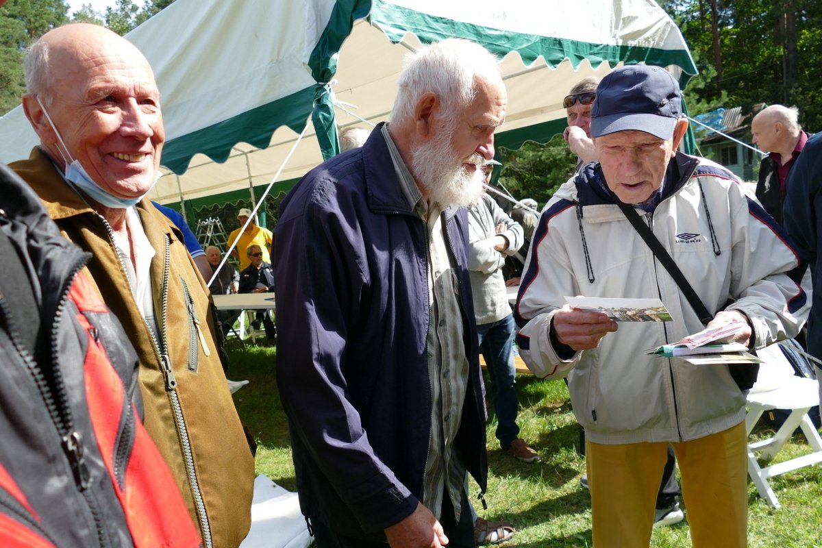 Nemažas būrys atvyko tiesiog pabendrauti, prisiminti sparnuotą jaunystę, pabūti. Šypsenos, apsikabinimai, puiki nuotaika... Žvelgiant į smagiai klegančius, juokaujančius senjorus sunku patikėti, kad daugumai jau per septyniasdešimt. Garbiausias – 95 metų Zigmas Polinauskas nardydamas tarp draugų su pluoštu nuotraukų klausė: „Ar tik čia ne tu? Dovanoju!“ Jau vient jį pamačius, veidą užlieja šypsena.