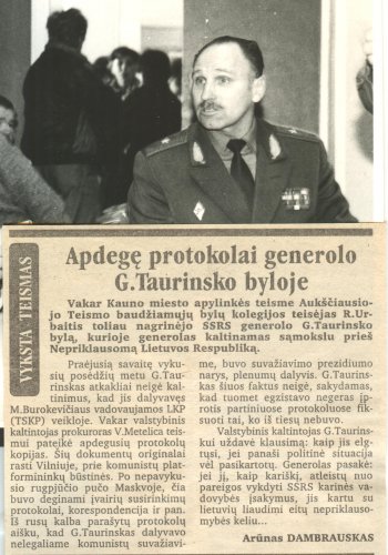 1994 m. už antivalstybinę veiklą ir krašto apsaugos administracinio pastato užgrobimą G. Taurinskas nuteistas laisvės atėmimu dvejiems metams šešiems mėnesiems, kartu konfiskuojant turtą. Laikraščio „Kauno tiesa“ fragmentas.