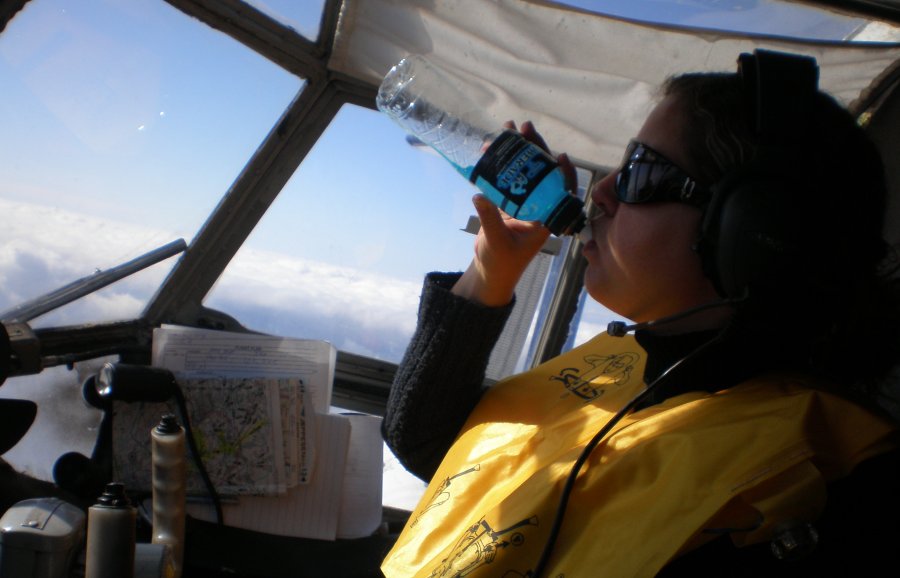 ...trumpabangės radijo antenos stovas, kuris kartu yra ir kuro ventiliacijos vamzdis, tiesiog nulūžęs nuo ledo masės ir laikosi tik dėka aliuminio skardos likučių...