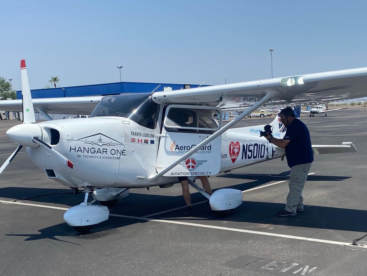 Skrydžiui aplink pasaulį pasirinktas laiko patikrintas lėktuvas - 2001 m. gamybos Cessna 172R. Orlaivis visiškai atnaujintas ir visapusiškai parengtas tolimai kelionei - sumontuota naujausia įmanoma įranga, moderniausios navigacijos ir saugos sistemos. Lėktuvą suteikė ir parengė ilgametę patirtį turinti olandų kompanija Hangar-One Technics & Avionics, o tai ir yra atsakymas, kodėl šis rekordinis skrydis oficialiai prasidėjo ir baigėsi ne Traviso gimtojoje Anglijoje, o Olandijoje.