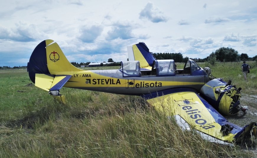 Incidento priežastis – ore užgeso variklis, skraidant virš pakilimo tako, todėl teoriškai buvo galimybė saugiai nutūpti ir be veikiančio variklio, tačiau tupiant lėktuvas pataikė į tako vidurį ir pritrūko jo ilgio, o iškart už tako žiojėja didelė griova. Pilotė staigiai nukreipė lėktuvą dešinėn ir dideliu greičiu riedantis aparatas smarkiai užsisuko, kabino sparnu žemę ir, kol sustojo, buvo smarkiai sulaužytas, nepataisomai. Sulaužyti abu lėktuvo sparnai, uodega, nuo fiuzeliažo nutrūko variklis, važiuoklė. Lėktuvas (registracijos numeris LY-AMA) buvo pagamintas 1987 metų sausio mėnesį ir tarnavo 31 metus.