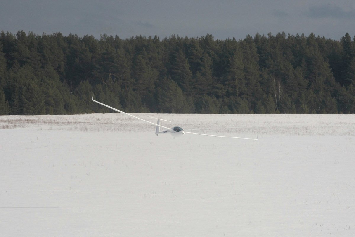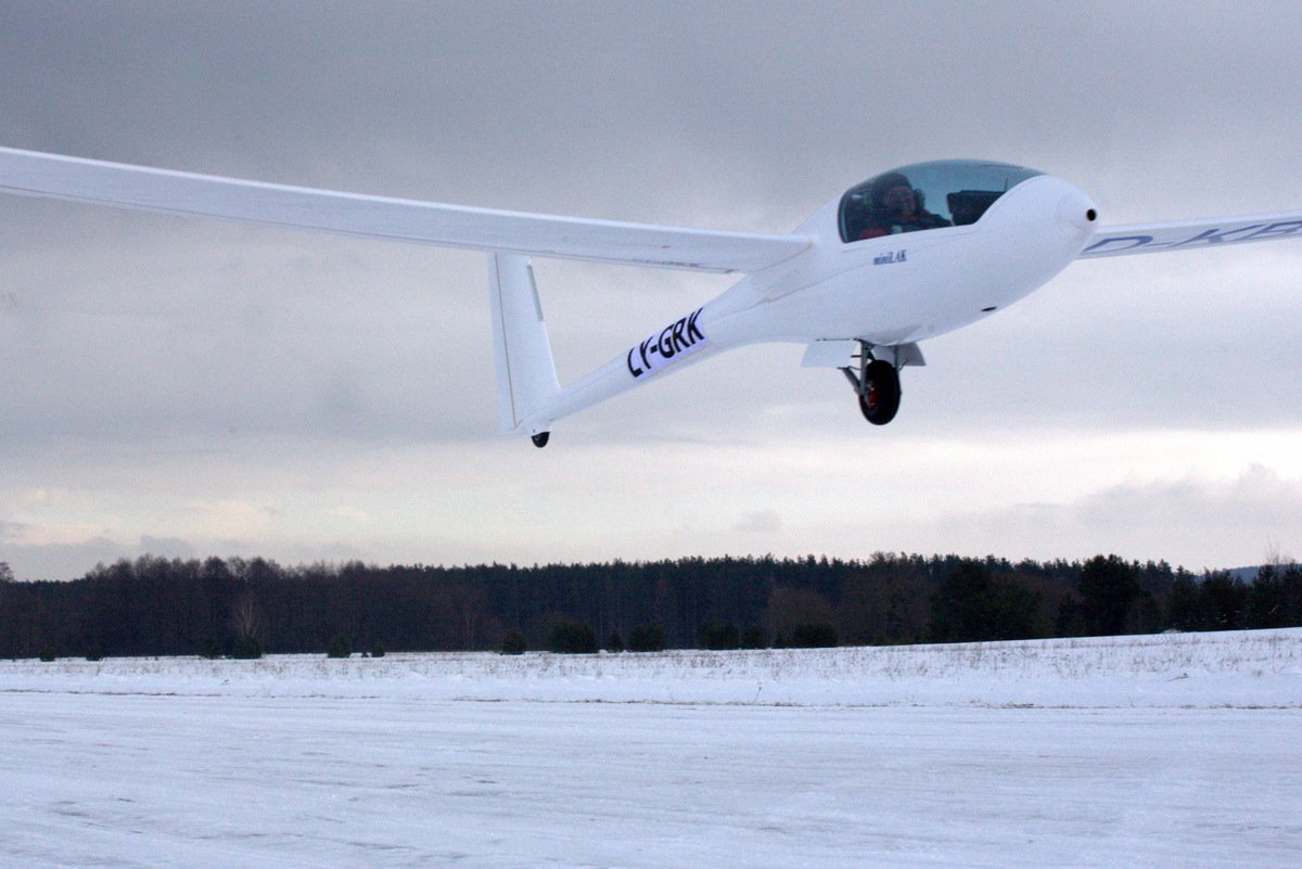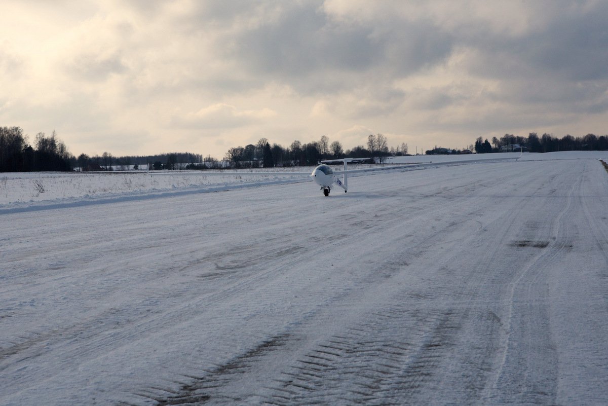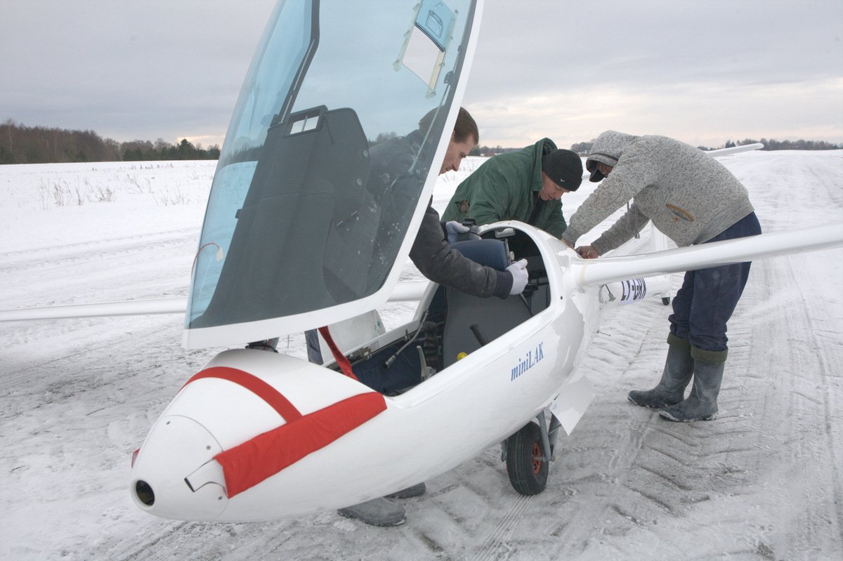 Sausio 29-ą dieną, sniego valytuvui išstumdžius sniegą nuo pakilimo tako, pirmam skrydžiui pakilo ką tik iš gamyklos atvežtas baltasparnis „miniLAK“ su elektros jėgaine. Juo skrido bendrovės direktorius Vytautas Mačiulis. Užduotis – išbandyti ne tik sklandytuvą, elektros jėgainę, bet ir pirmą kartą įmontuotą blykstę ant kilio. Jos paskirtis – būti geriau matomam ir išvengti susidūrimų.