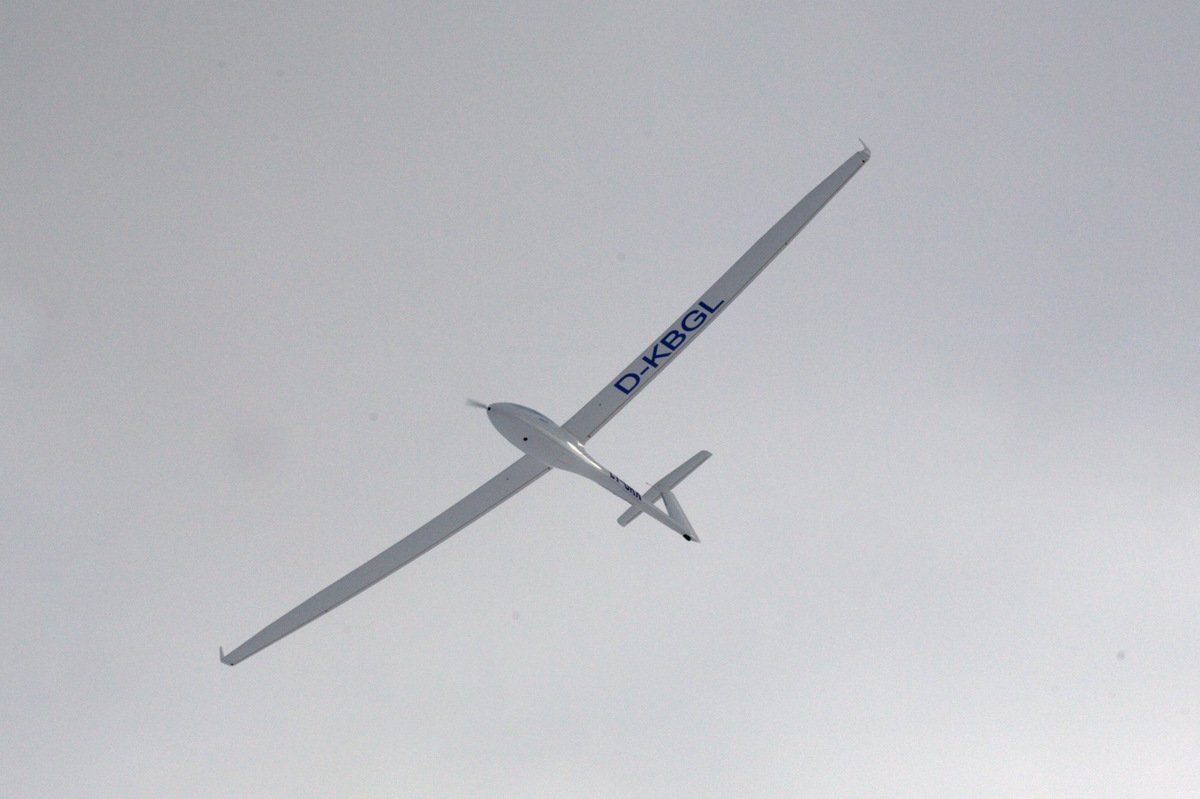 Sklandytuvų gamyklos direktorius sklandytojas Vytautas Mačiulis išbandė naują baltasparnį ore Pociūnų aerodrome.