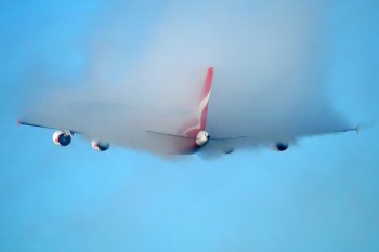 Tai - tik kondensacija, bet lėktuvai daugiausia teršia kildami. (Damien Aiello, Wikimedia)
