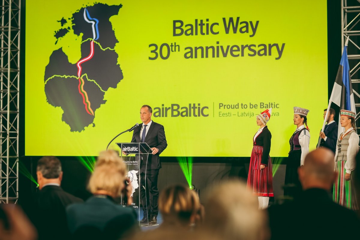 Latvijos oro linijų bendrovė „airBaltic“ rugpjūčio 21 dieną pasveikino partnerius ir darbuotojus tarptautiniame Rygos oro uoste, kur vyko renginys, skirtas Baltijos kelio 30-mečiui. Šia proga kompanija Baltijos šalims padovanojo šių šalių vėliavomis puoštus lėktuvus ir Baltijos keliui skirtą dainą.