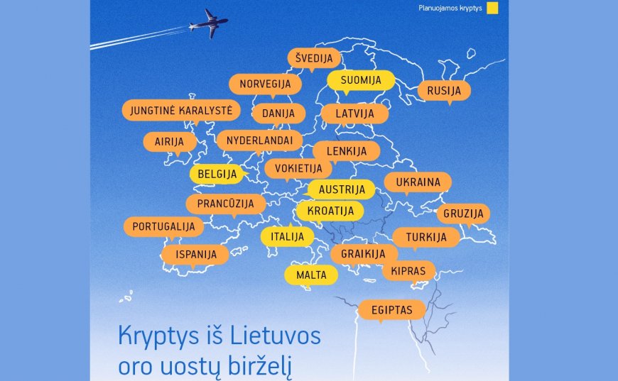 Nuo maždaug mėnesio vidurio iš Vilniaus oro uosto tiesioginiu skrydžiu bus galima pasiekti Vokietijos miestus Berlyną, Frankfurtą ir Brėmeną („Ryanair“). Patogus susisiekimas bus užtikrintas su Jungtine Karalyste – Birgmingamu („Wizzair“), Lidsu („Ryanair“), Londono Gatviko oro uostu („airBaltic“), Liverpuliu („Wizzair“).