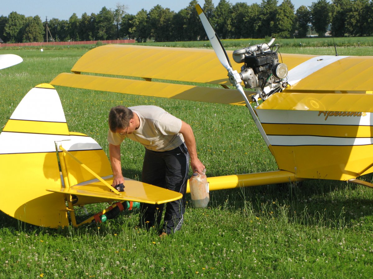 „Dažniausiai kylu ir leidžiuosi aerodrome, kur kilimo takas asfaltuotas. Kai per pirmus skrydžius uodega brūkštelėdavo į kilimo taką, džeržgiantis garsas net nupurtydavo. Pritvirtinau riedučių ratuką ir dabar man ramiau”, – sakė Gintas.