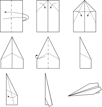 Paprasto popierinio lėktuvėlio schema.