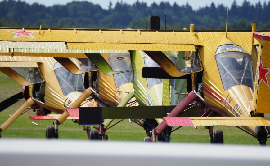 Aerodromuose dar galima aptikti orlaivių, ant kurių šonų matosi laiko nublukinti, bet įskaitomi sovietmetį menantys užrašai, pvz., DOSAAF, o aviamodeliuotojai, besilaikantys tikroviškumo principo, ant savo modelių ir patys nudažo nacistinius ar komunistinius ženklus – svastiką, raudoną žvaigždę ar panašiai. Vieni laikosi istorijos tikrovės, kiti ant jų burnoja, girdi, propaguojat uždraustus simbolius, režimus. Tai kursto diskusijas, nes nuomonės nesutampa.