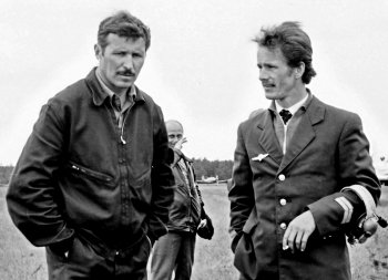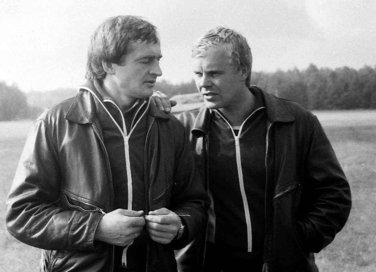 Agirdas Šiožinys ir Romualdas Pivnickas. Antrame plane Jonas Bagdonas, 1980 m.