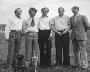 R.Pivnickas tapo Dariaus ir Girėno varžybų čempionu, 1976 m. Iš kairės: A.Unikauskas, R.Pivnickas, R.Šmioka, R.Aleksejus, Č.Blaževičius. Iš A.Unikausko asmeninio albumo.