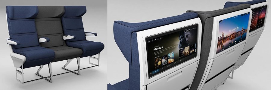 Keleiviai filmus galės žiūrėti ne savo telefonų ar planšečių ekranuose, o didžiuliuose sėdynių nugarėlėse sumontuotuose ekranuose. Įdomu tai, kad viduryje sėdintis keleivis džiaugsis ne tik platesne sėdyne, bet ir didesniu 18,5 colių ekranu, kai visi kiti žiūrės į 15,6 colių įrenginius.