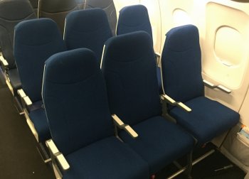 Įprastų ekonominės klasės sėdynių plotis yra apie 45,7 cm - tokio pločio yra ir „Molon Labe Seating“ lango ir tako sėdynės. Tuo tarpu vidurinės sėdynės plotis siekia net 53,3 cm. Taigi, viduryje sėdintis keleivis gali džiaugtis didesne erdve, o ir šoniniai keleiviai jausis šiek tiek laisviau, tačiau bendras trijų sėdynių modulio plotis nesiskiria nuo standartinio, todėl tako plotis išlieka toks pat - skrydžių palydovai toliau stumdys standartinius vežimėlius.
