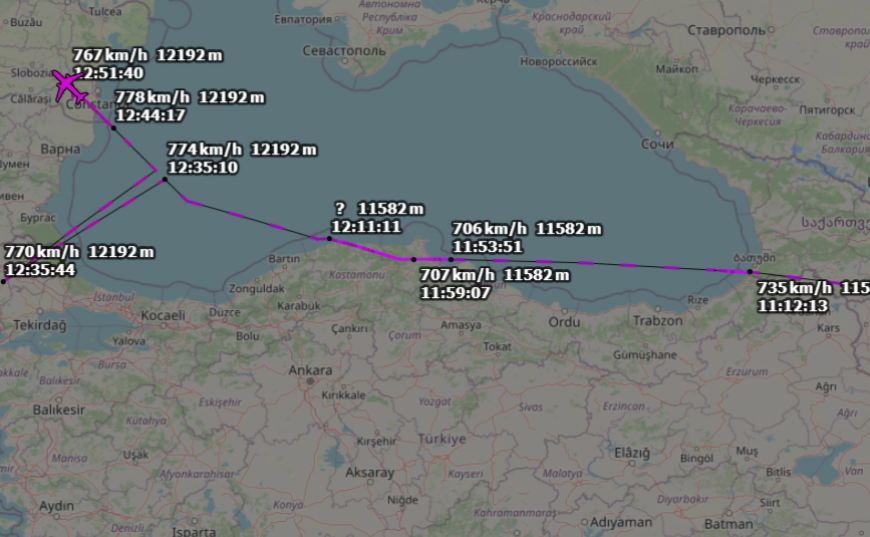 Pridedamoje nuotraukoje akivaizdžiai matomas lėktuvo skrydžio trajektorijos "šokis" (aplikacija ADS-B Exchange). Neįtikėtina. Tokias klaida galima pateisinti dviem priežastimis - Saulės aktyvumo įtaka GPS palydovams, arba karo veiksmų Ukrainoje pasekmė. Tiesa, FlightAware aplikacija rodo teisingą skrydžio trajektoriją.
