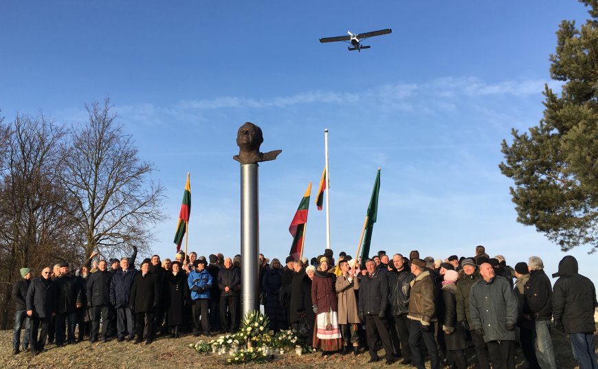 Virš paminklo praskrido Biržų aeroklubo lėktuvai „Jak-12“, „Cessna 150“ ir Biržų pilotų klubo lėktuvas „Bristell“.